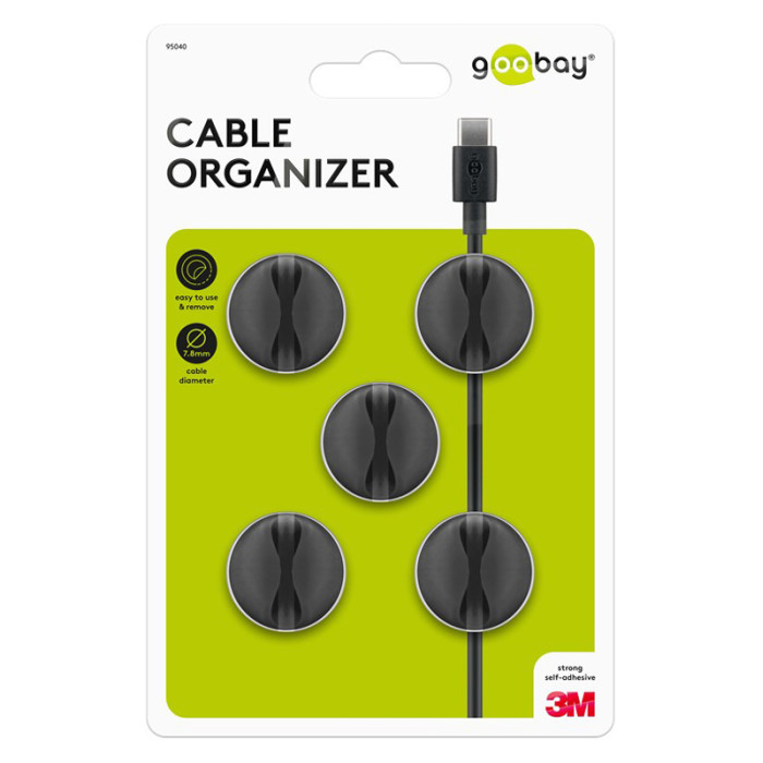 GOOBAY οργανωτές καλωδίων σιλικόνης 95040, 1 θέση, Φ7.8mm, μαύρο, 5τμχ