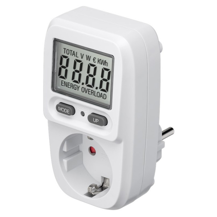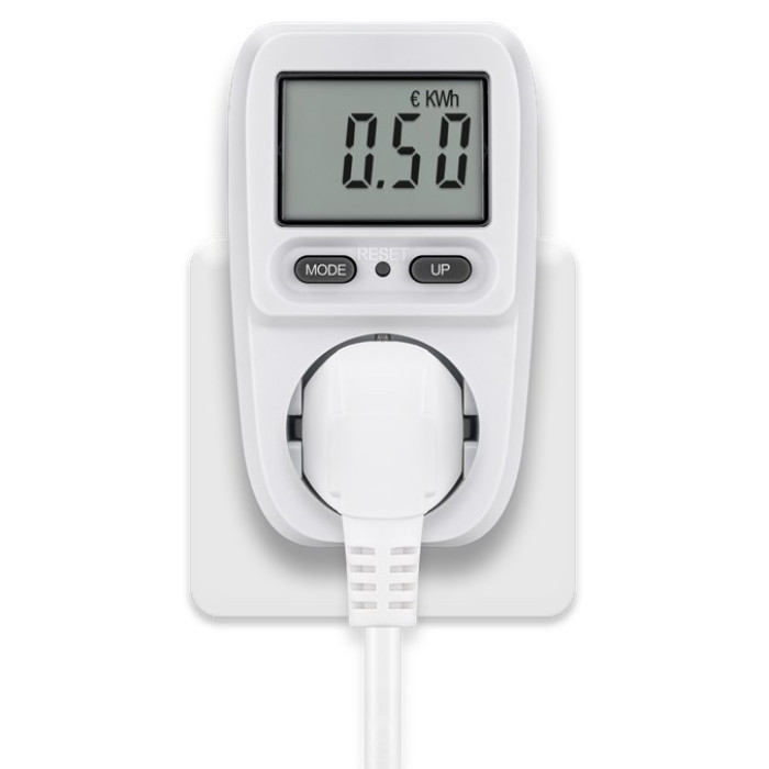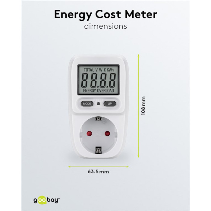Μετρητής της Goobay για τη μέτρηση της κατανάλωσης ρεύματος των συνδεδεμένων οικιακών ηλεκτρικών συσκευών. Ενσωματώνει ευανάγνωστη οθόνη που σας επιτρέπει να παρακολουθείτε την κατανάλωση του ρεύματος αλλά και το κόστος σε ευρώ/kWh. Η ανάγνωση των δεδομένων μπορεί να γίνει σε πραγματικό χρόνο αλλά και μακροπρόθεσμα εφόσον παραμείνει συνδεδεμένη στην πρίζα η ηλεκτρική συσκευή.