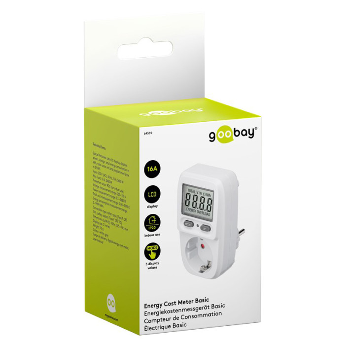 GOOBAY μετρητής κατανάλωσης ρεύματος 64589 με οθόνη, 16A, λευκός