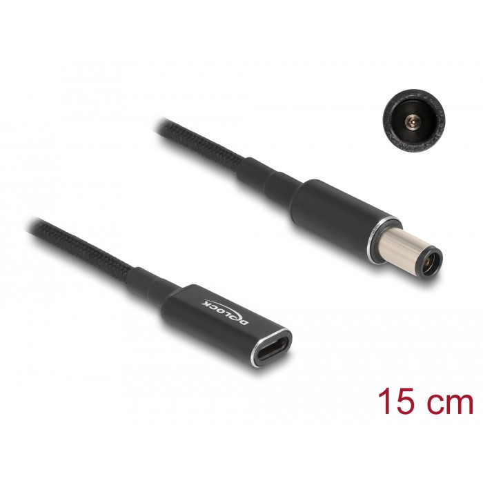 DELOCK καλώδιο τροφοδοσίας 60032, USB-C σε HP 7.4x5.0mm, 15cm, μαύρο