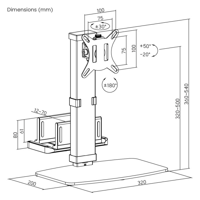 -διαστάσεις: 320 x 308 x 375~555mm