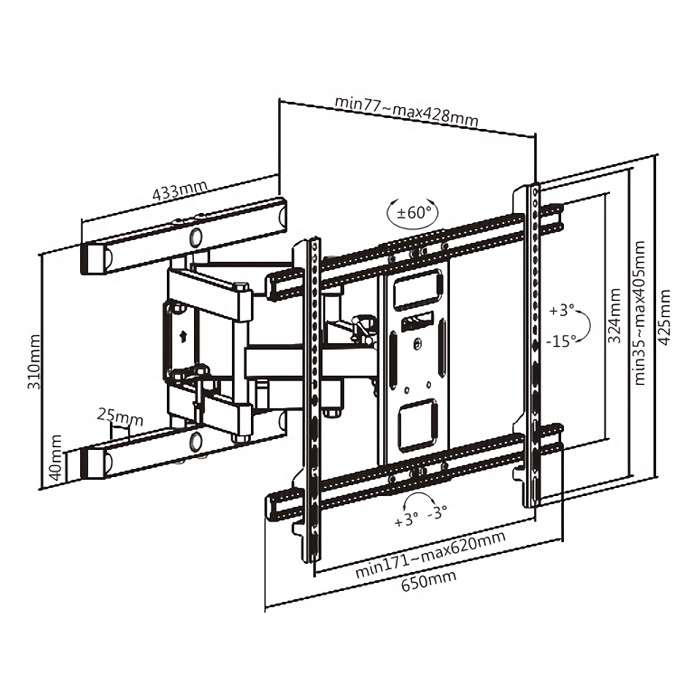 BRATECK επιτοίχια βάση τηλεόρασης LPA61-466, 37-80", έως 60kg, full motion