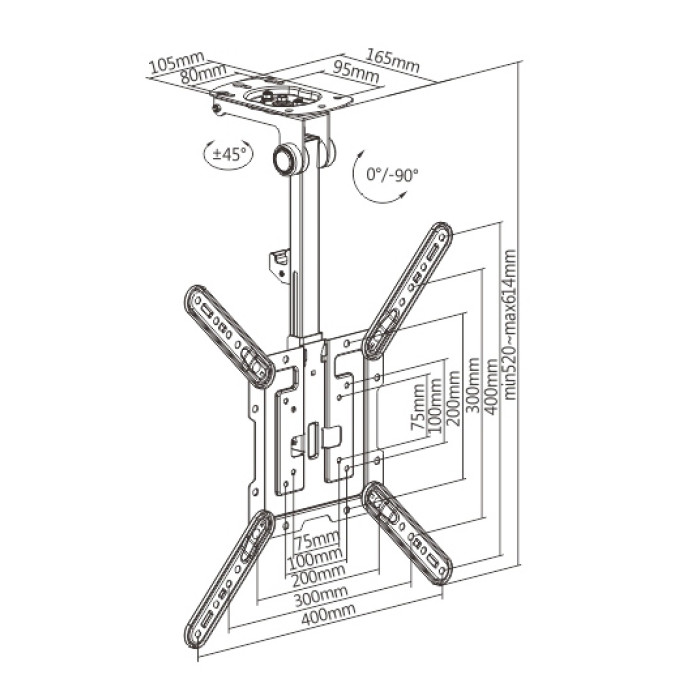 VESA Compatible: 75x75, 100x100, 100x200, 200x100, 200x200, 200x300, 300x200, 200x400, 400x200, 300x300, 300x400, 400x300, 400x400