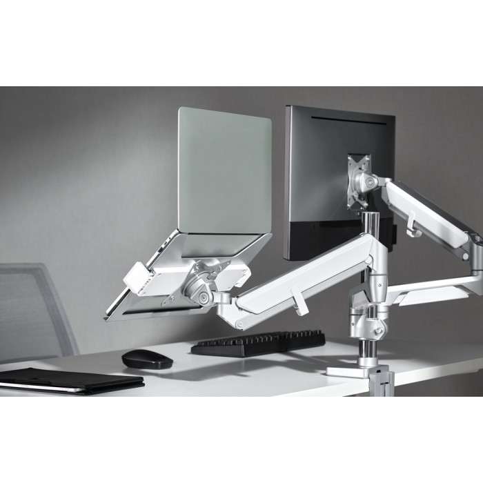 Μεταλλική βάση για laptop από 11.6" έως 17.3" με βάρος έως 9kg. Τοποθετείται εύκολα σε βάσεις γραφείου για οθόνες προδιαγραφών VESA 75x75.
