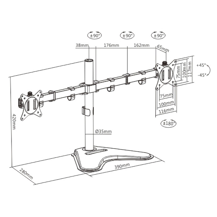 Οι βάσεις οθονών και τηλεοράσεων της Brateck διακρίνονται για την στιβαρή κατασκευή και την μελετημένη, εργονομική σχεδίαση τους. Υποστηρίζουν πρότυπα VESA των πιο διαδεδομένων διαστάσεων και cable management σχεδίαση, για την βέλτιστη οργάνωση των καλωδίων.