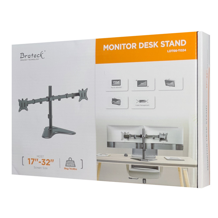 BRATECK βάση γραφείου για 2x οθόνες LDT66-T024, 17-32", έως 9kg