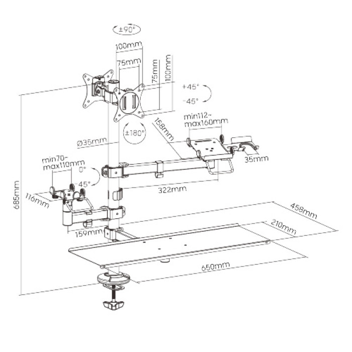 -τοποθετείται στην επιφάνεια του γραφείου με σφιγκτήρα