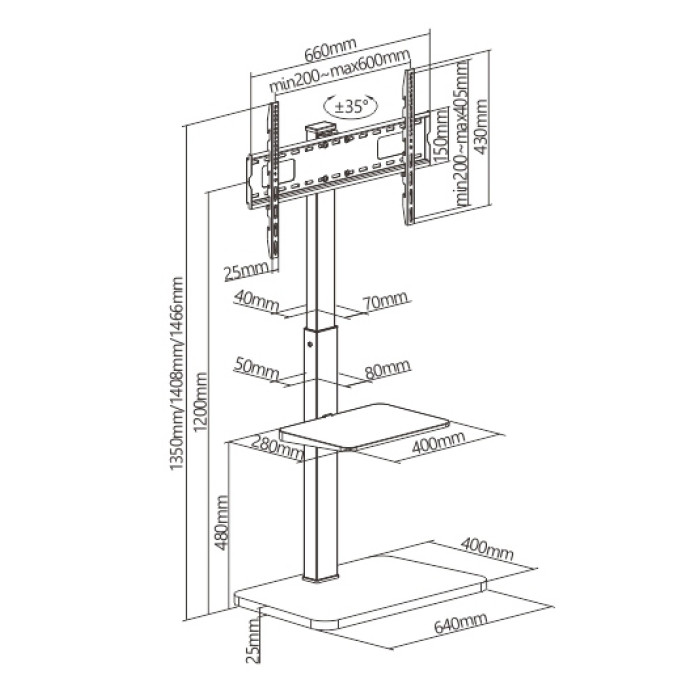 -μέγιστο φορτίο: βάση τηλεόρασης: 40kg, ράφι: 5kg