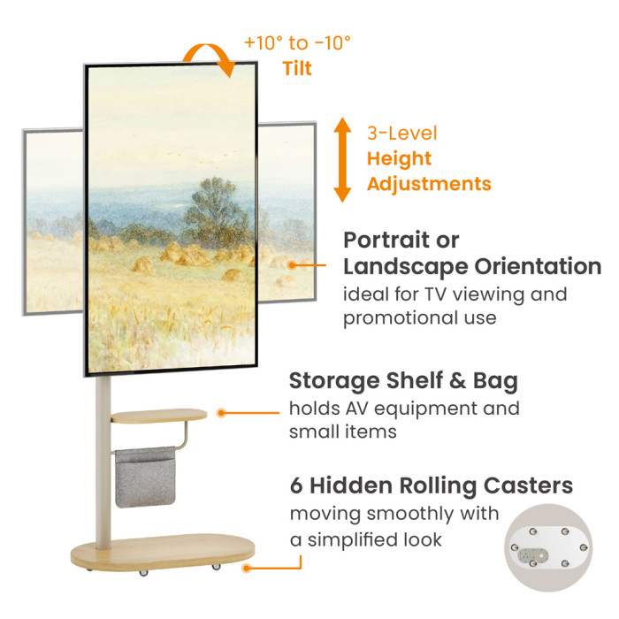 Ροδάκια για εύκολη μετακίνηση της τηλεόρασης, με μηχανισμό κλειδώματος που εξασφαλίζει τη σταθερότητα όταν απαιτείται.