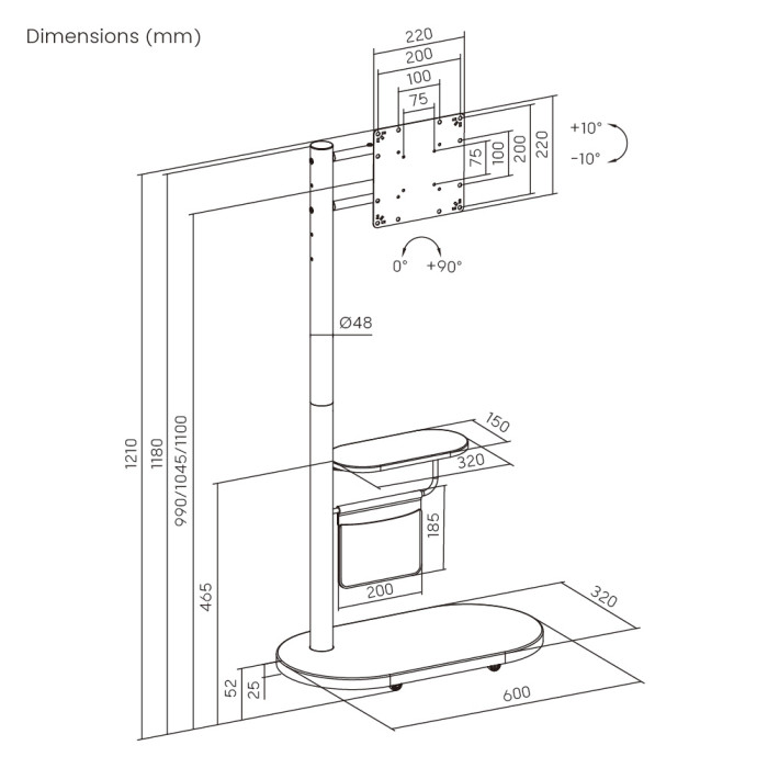 -μέγιστο φορτίο: βάση τηλεόρασης: 15kg, ράφι: 5kg