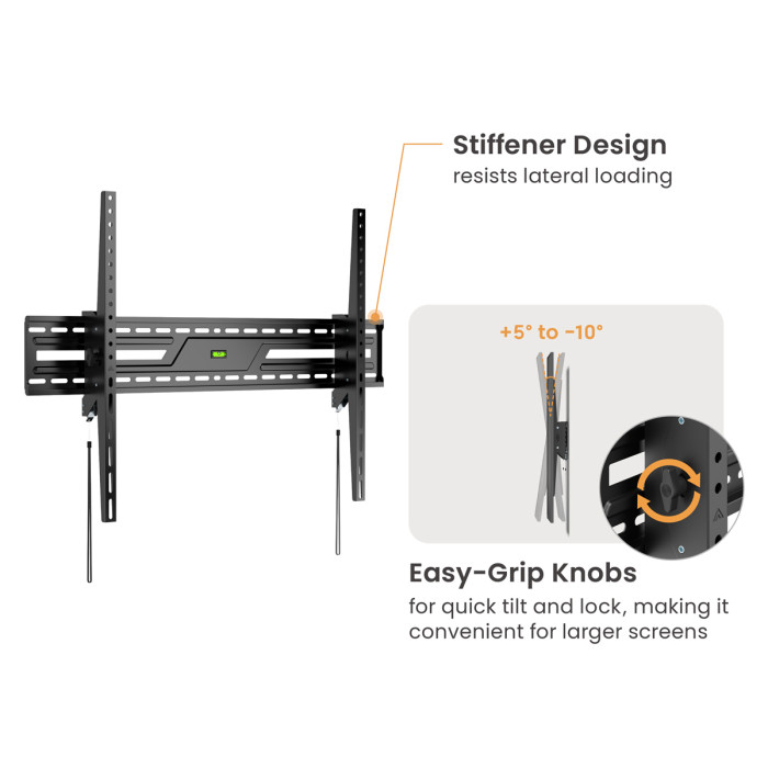 POWERTECH επιτοίχια βάση τηλεόρασης PT-1368, 43-100", έως 75kg, ρυθμιζόμενη κλίση