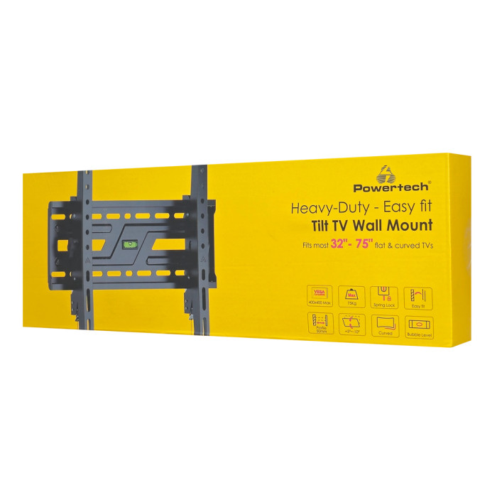 POWERTECH επιτοίχια βάση τηλεόρασης PT-1372, 32-75", έως 75kg, ρυθμιζόμενη κλίση