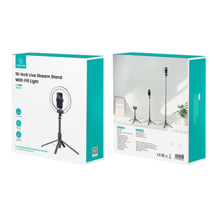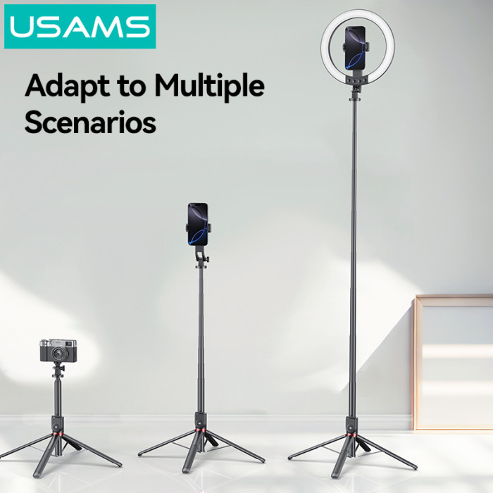 USAMS φωτιστικό δαχτυλίδι LED ZB323 με τρίποδο & βάση smartphone, μαύρο