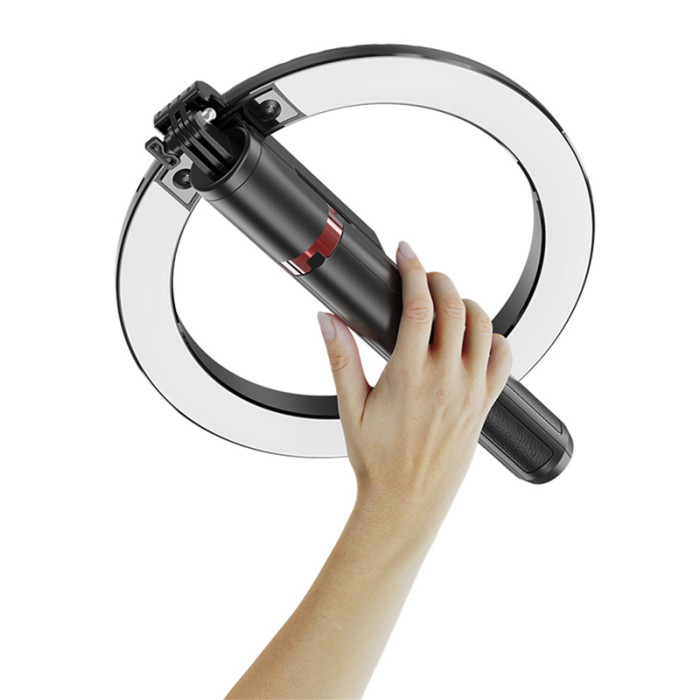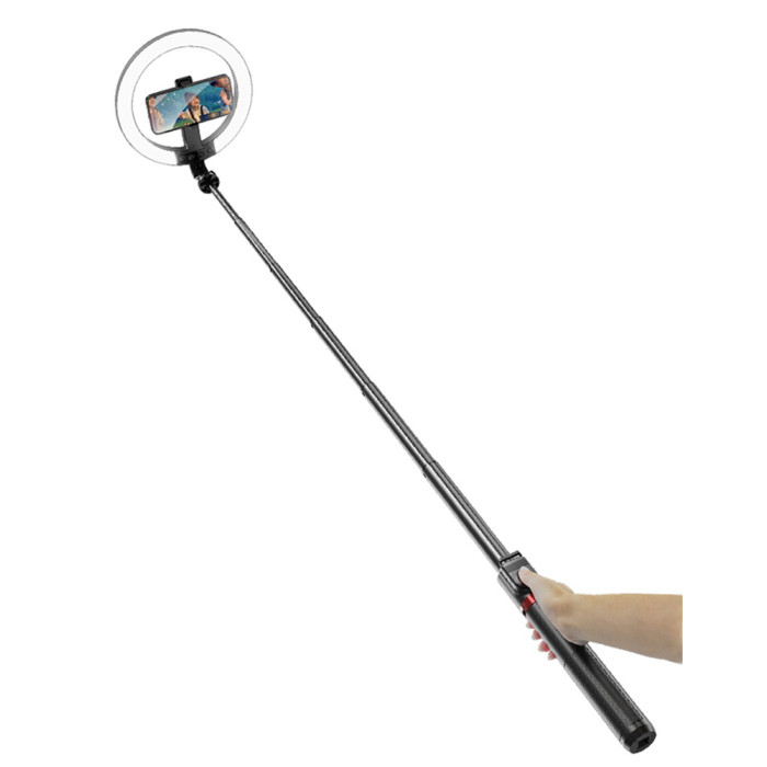 Μπορεί να χρησιμοποιηθεί και ως selfie stick είτε με το φωτιστικό δαχτυλίδι είτε χωρίς αυτός.