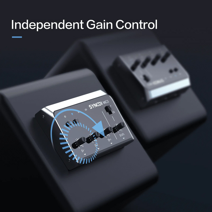 Μίκτης ήχου 4 καναλιών από την Synco, ιδανικός για live streaming ή podcasts σε πολλαπλές συσκευές ταυτόχρονα.
