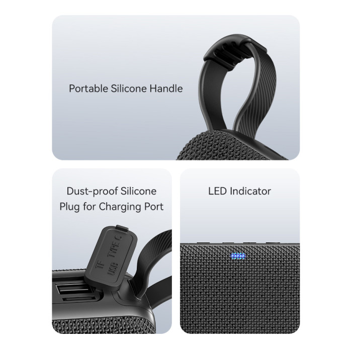 USAMS φορητό ηχείο YX015, 5W, Bluetooth, 1200mAh, μαύρο
