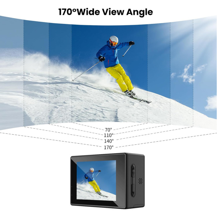 Με οπτικό πεδίο 170°, καταγράφει περισσότερα στο κάδρο, ιδανική για δράση και τοπία.