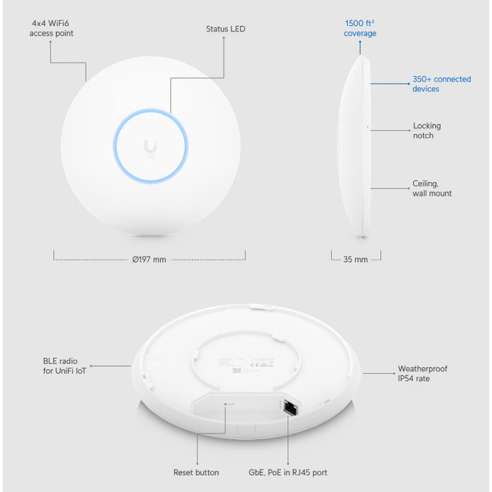 Το access point U6 Pro της Ubiquiti με τεχνολογία Wi-Fi 6, σας προσφέρει γρήγορες ταχύτητες ασύρματου δικτύου που φτάνουν έως και 5300Mbps σε διπλή ζώνη, 2.4GHz και 5GHz.