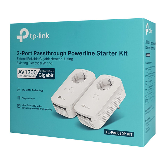TP-LINK powerline TL-PA8030P kit passthrough, AV1300 3x Gigabit, Ver 3.0
