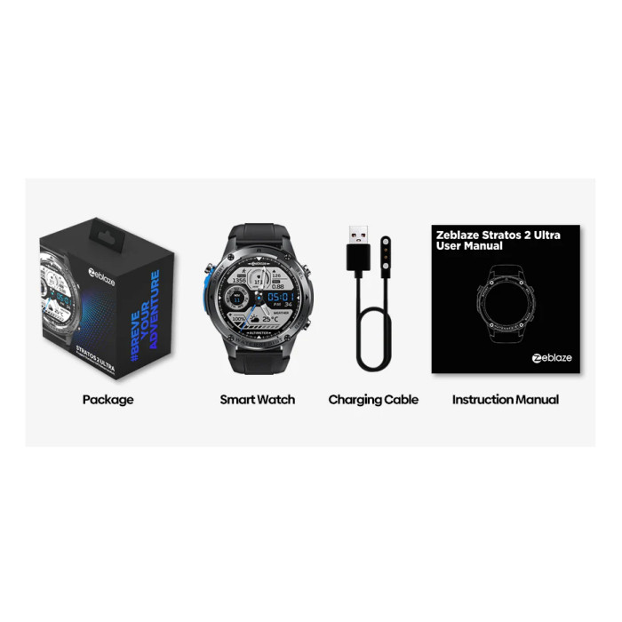ZEBLAZE smartwatch Stratos 2 Ultra, heart rate, 1.43" AMOLED, GPS, MIL-STD-810H, μαύρο