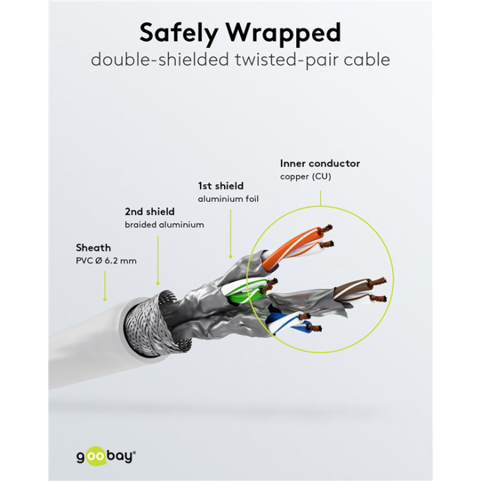 GOOBAY καλώδιο δικτύου 91093, CAT 7 S/FTP, copper, 500MHz, 2m, λευκό