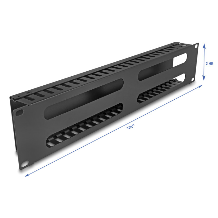 Cable management της Delock κατάλληλο για τοποθέτηση σε 19" καμπίνες rack. Διαθέτει ανοίγματα στο πάνω και κάτω μέρος αλλά και 4 μεγάλα ανοίγματα στο πίσω μέρος για να περνούν τα καλώδια.