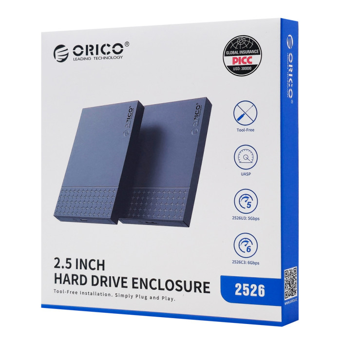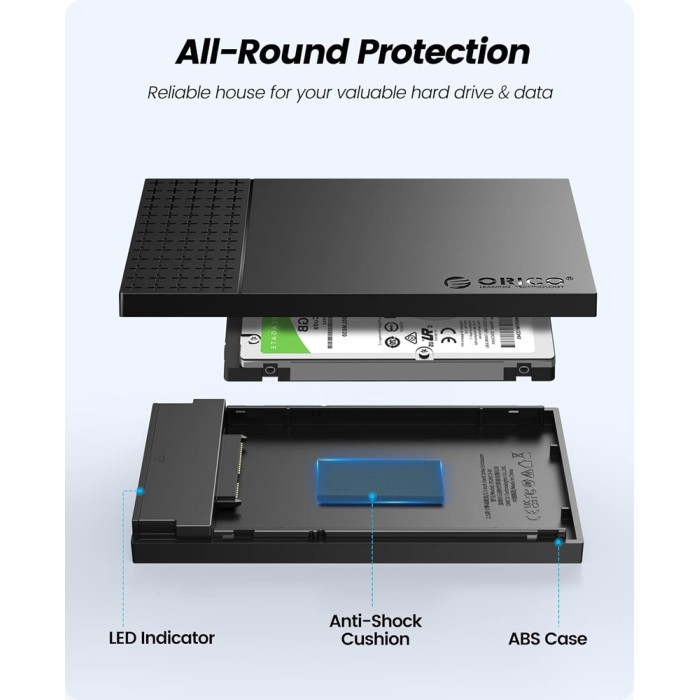 Η θήκη της ORICO επιτρέπει την σύνδεση ενός 2.5" SATA HDD ή SSD με έναν επιτραπέζιο ή φορητό υπολογιστή μέσω θύρας USB.