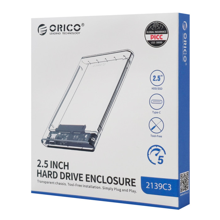 ORICO θήκη για 2.5" SATA HDD/SSD 2139C3, 5Gbps, διάφανη