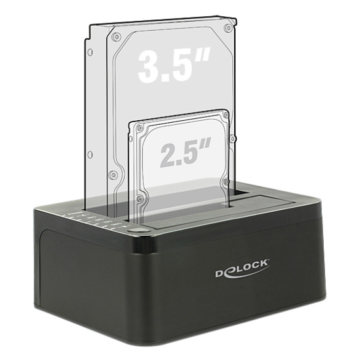 Αυτό το docking station της Delock επιτρέπει την σύνδεση έως δύο 2.5" ή 3.5" SATA HDD ή SSD σε έναν υπολογιστή μέσω θύρας USB.