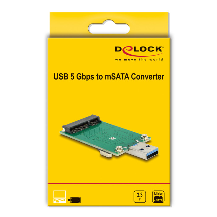 Αυτός ο αντάπτορας της Delock επιτρέπει τη σύνδεση μιας μονάδας mSATA μέσω θύρας USB ενός laptop ή desktop.