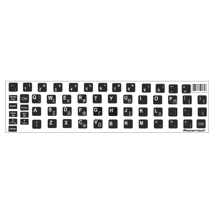 POWERTECH αυτοκόλλητα πληκτρολογίου PT-1419 με ελληνικούς & αγγλικούς χαρακτήρες, μαύρο