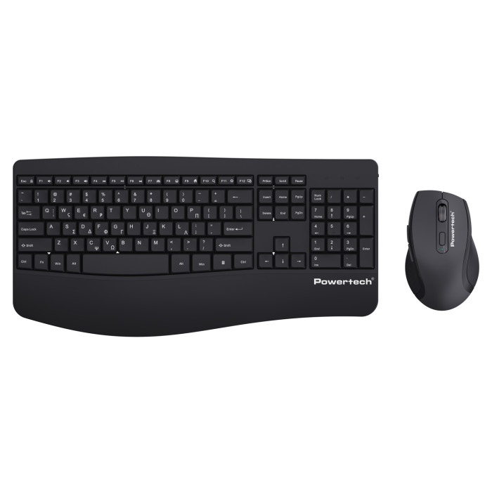 Set περιφερειακών της Powertech που αποτελείται από ασύρματο πληκτρολόγιο και ασύρματο οπτικό ποντίκι. Είναι συμβατά με συσκευές όπως desktop, laptop, tablet κλπ.