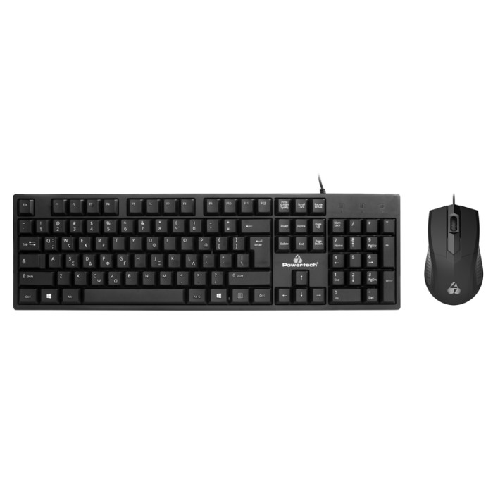 Set περιφερειακών για PC από την Powertech που αποτελείται από ενσύρματο πληκτρολόγιο και ενσύρματο οπτικό ποντίκι.