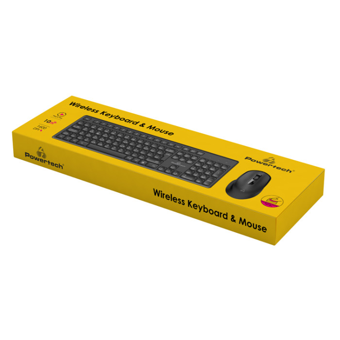 Set περιφερειακών για PC από την Powertech που αποτελείται από ασύρματο πληκτρολόγιο και ασύρματο οπτικό ποντίκι.
