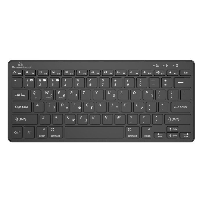 Ασύρματο πληκτρολόγιο της Powertech, ιδανικό για συσκευές όπως desktop, laptop, smartphone και tablet.