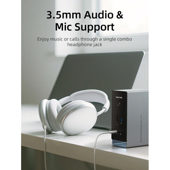 CABLETIME docking station CT-DK181-AG, 16 θυρών, USB-C σύνδεση, 100W PD, 1000Mbps, MST, γκρι