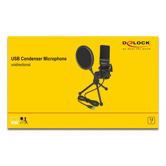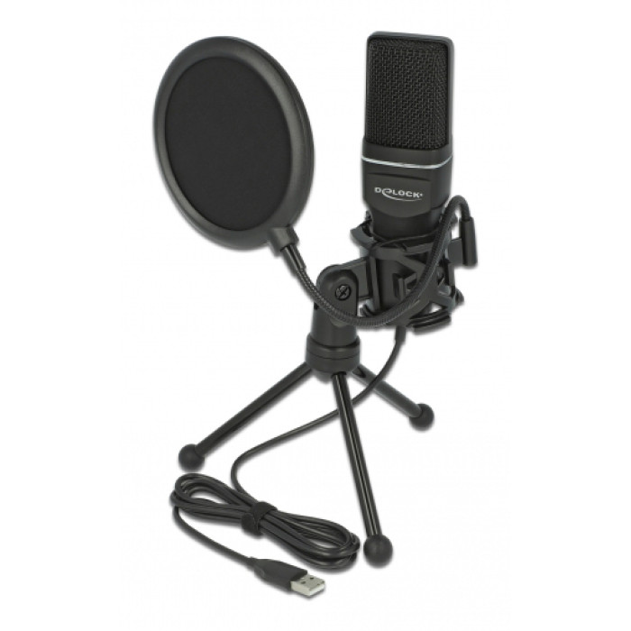 DELOCK Mικρόφωνο studio με pop φίλτρο & αντιανέμιο 66331, πυκνωτικό, USB