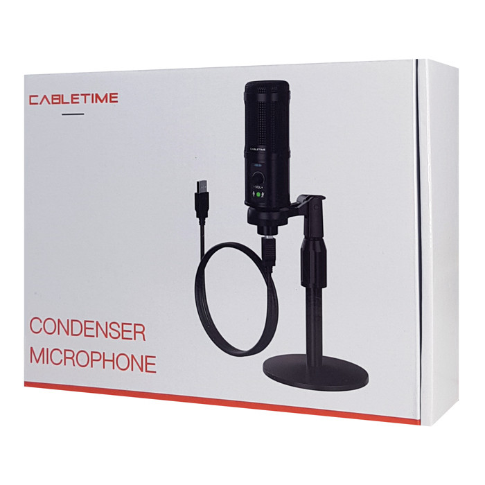 Πυκνωτικό μικρόφωνο της Cabletime, ιδανικό για ηχογραφήσεις, podcast, live streaming, gaming και άλλες εφαρμογές. Εξοπλίζεται με αντιανέμιο το οποίο συμβάλει στην μείωση του θορύβου λόγω ανέμου ή εκφοράς λόγου.