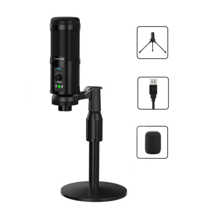 CABLETIME πυκνωτικό μικρόφωνο MP03-AB, με αντιανέμιο & τρίποδα, USB