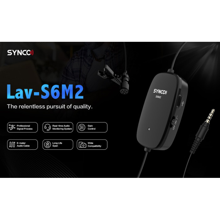 SYNCO μικρόφωνο Lav-S6M2, clip-on, omnidirectional, 3.5mm, 400mAh, μαύρο