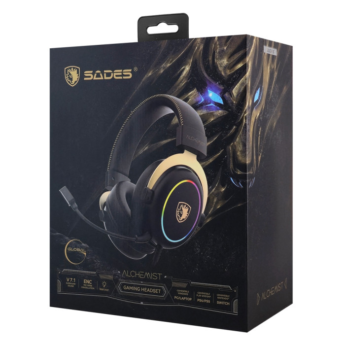 SADES gaming headset Alchemist, USB σύνδεση, 50mm, V7.1 surround, ENC, RGB, multi-platform, μαύρο