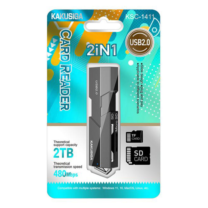 KAKUSIGA card reader KSC-1411 για SD & micro SD, 480Mbps, USB σύνδεση, μαύρο