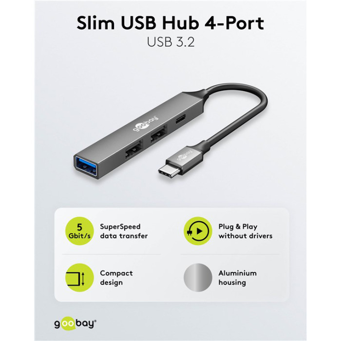 GOOBAY USB hub 74459, 4x θυρών, USB 3.2, 5Gbps, USB-C σύνδεση, γκρι