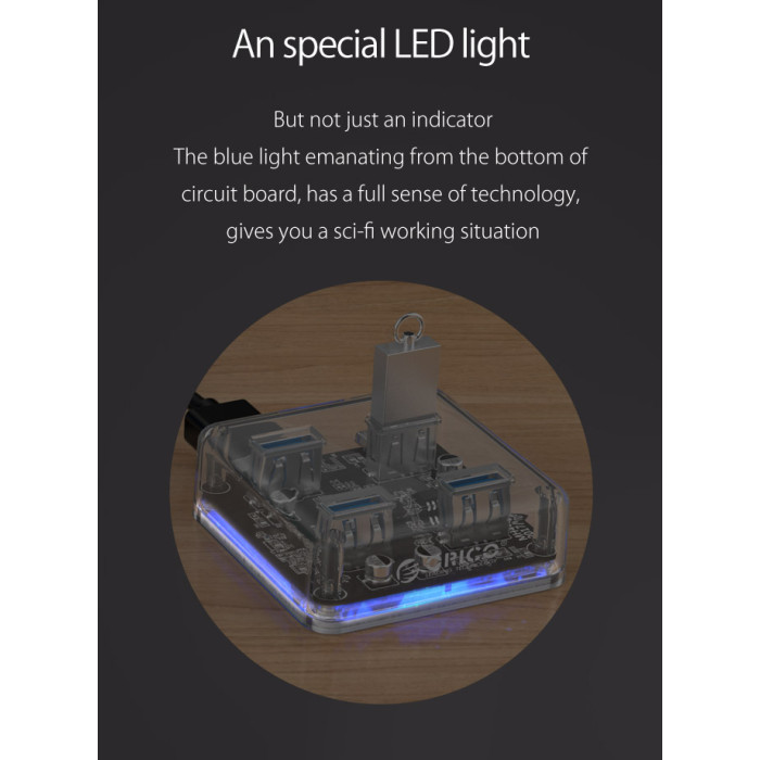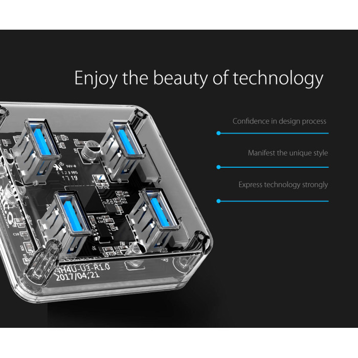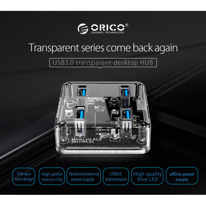 ORICO USB hub MH4U-U3, 4x θυρών, 5Gbps, διάφανο