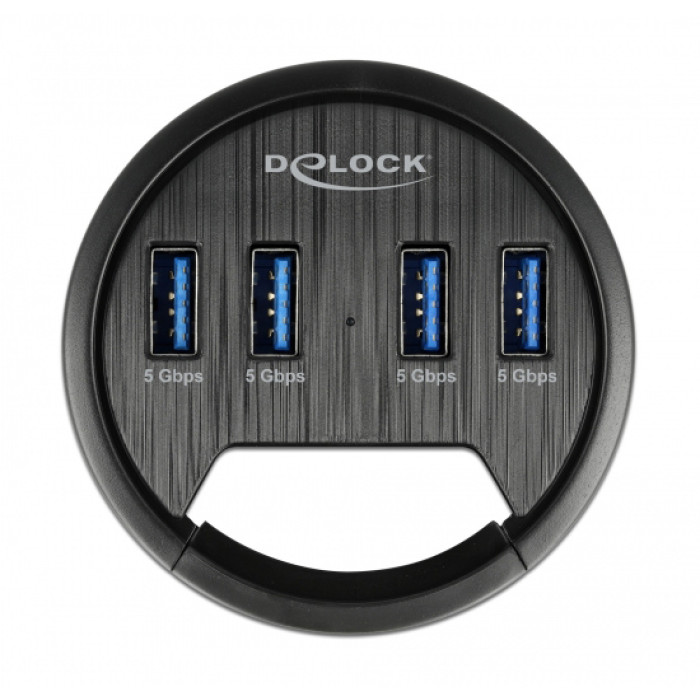 DELOCK USB hub 64153, 4x θυρών, 5Gbps, Φ60mm, USB σύνδεση, μαύρο
