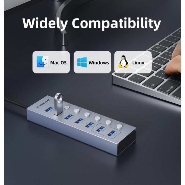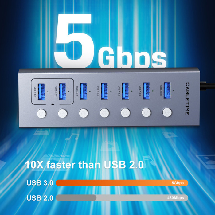 Το USB hub της Cabletime επεκτείνει τις θύρες του desktop ή laptop σας με 7x USB θύρες.
