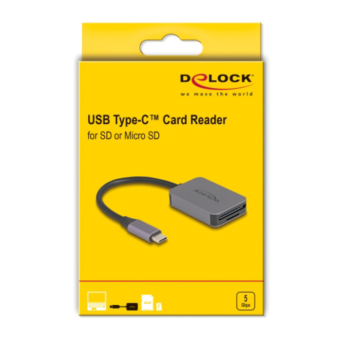DELOCK card reader 91009 για SD & micro SD, USB-C, 5 Gbps, γκρι