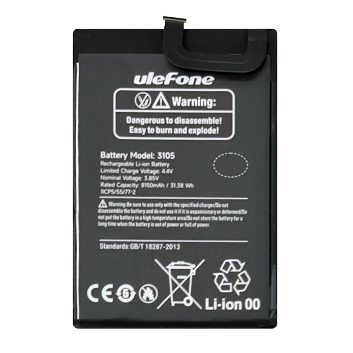 Επαναφορτιζόμενη μπαταρία λιθίου για το smartphone Armor X11 Pro της Ulefone.