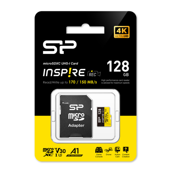 SILICON POWER κάρτα μνήμης microSDXC Inspire, 128GB, UHS-I U3 A1 V30