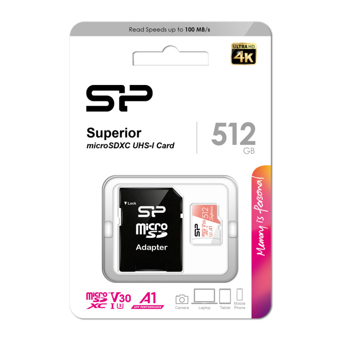 SILICON POWER κάρτα μνήμης microSDXC Superior, 512GB, C10 UHS-I U3 A1 V30